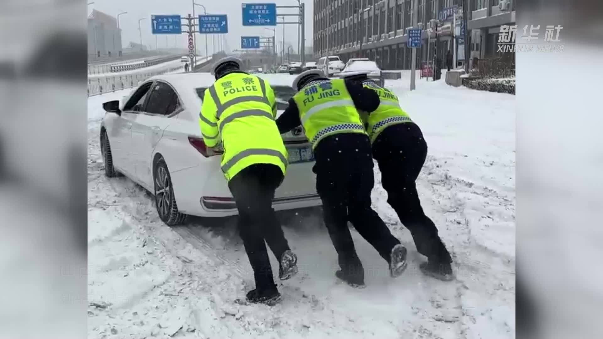 “一二三,推!” 在經(jīng)十路、濼源大街等主干道上,濟(jì)南文旅工作人員化身“推車俠與”熱心市民一起,喊著號(hào)子,齊心協(xié)力幫助打滑車輛脫困。他們的身影,成為風(fēng)雪中最靚麗的風(fēng)景線。